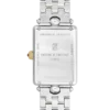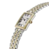 Découvrez la montre Classics Art Deco Carrée, une pièce horlogère qui allie l’héritage classique à une touche moderne. Son boîtier distinctif de 28 x 20,70 mm, en acier inoxydable poli et plaqué or jaune avec des flancs cannelés, capture l’essence du style Art Déco. Au cœur de cette montre bat le mouvement à quartz FC-200, garantissant une précision irréprochable et une autonomie de batterie exceptionnelle de 72 mois. Le cadran en nacre blanche, agrémenté d’un guilloché argenté central et de chiffres romains noirs, offre une lisibilité parfaite grâce à ses aiguilles noires. Protégée par un verre saphir convexe anti-reflets résistant aux rayures et étanche jusqu’à 3 ATM, cette montre est complétée par un bracelet en maille milanaise bicolore, en acier inoxydable et plaqué or jaune, pour un confort et un style intemporels.